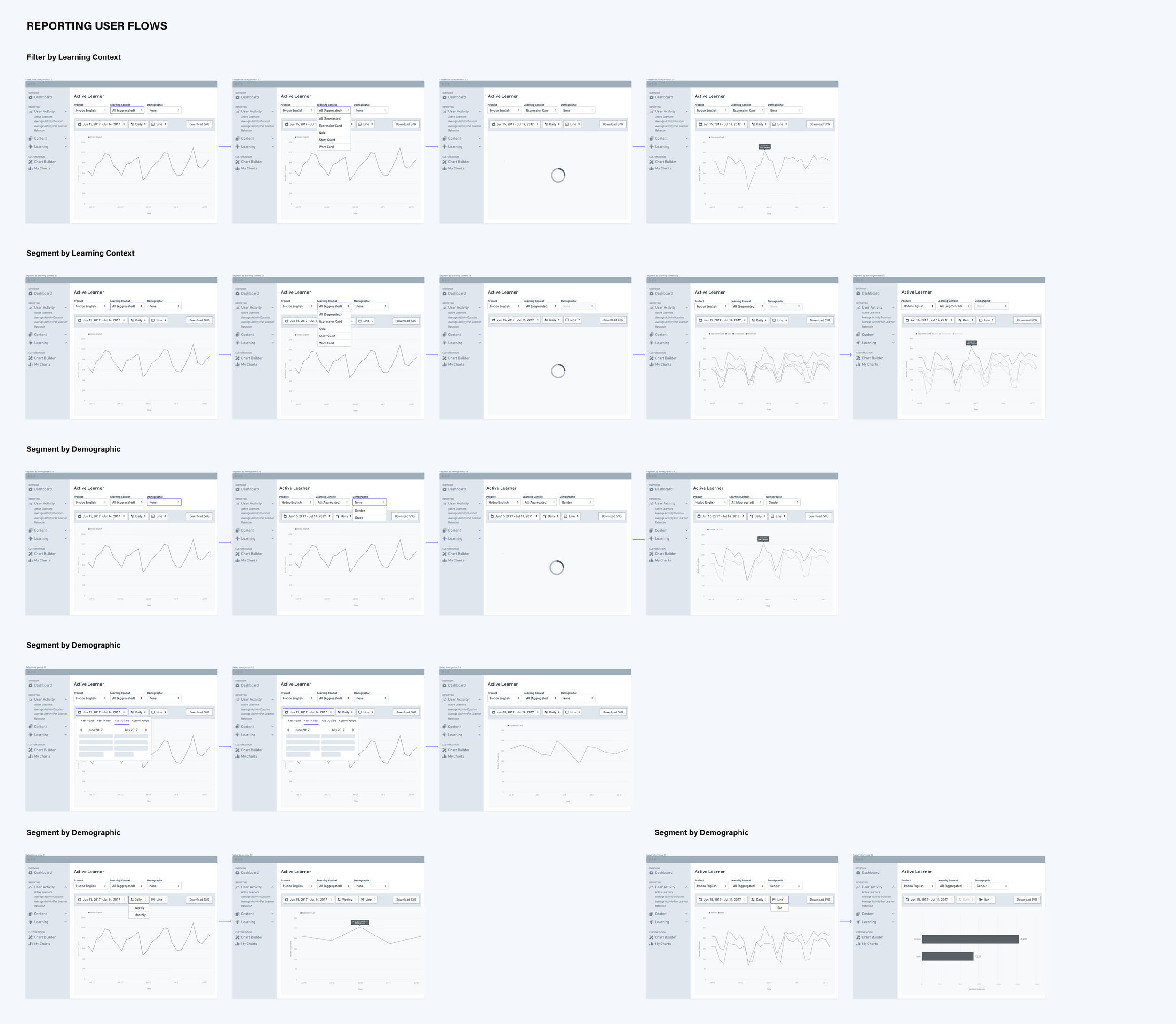 Filter and segment functions make it easy for users to drill down into the details. It helps understand different learner groups in terms of behavior, retention, and content usage, to allow users to make optimal product decisions.